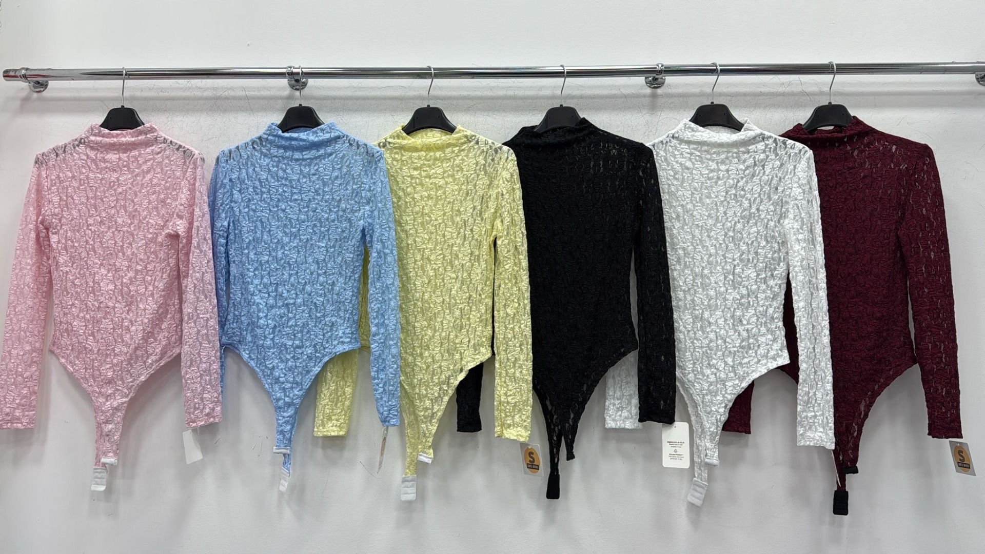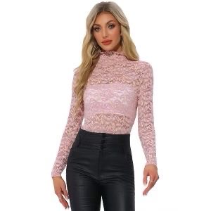 Body in pizzo floreale con collo alto e maniche lunghe